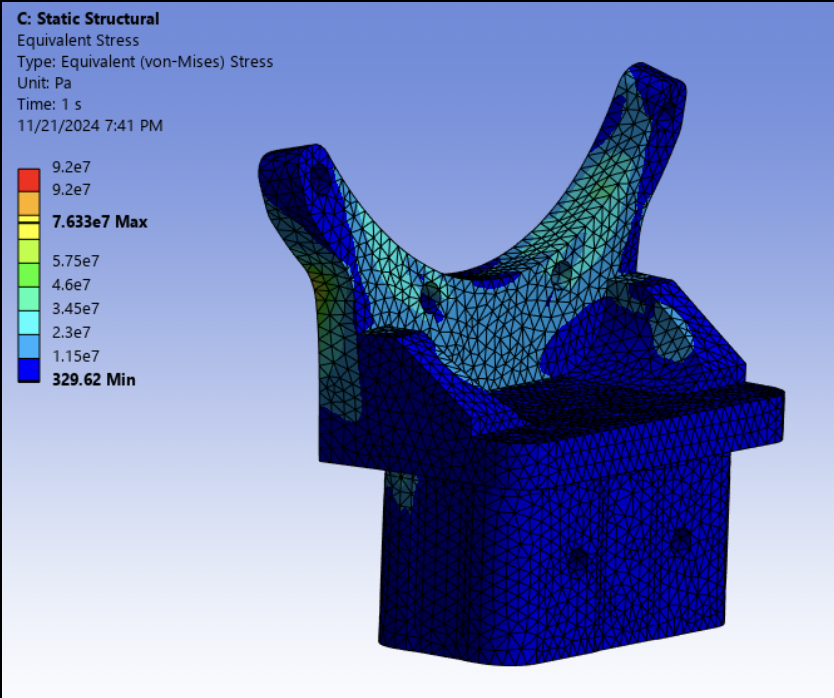 In my junior year, I designed the structure of the robotic manipulator for the Cornell Mars Rover project team. I redesigned the locations of the motors, moving one of the motors to the elbow of the manipulator, in order to reduce the moment created on the base of the robotic manipulator. I took the lead in assembling, wiring, and testing the arm. During testing and competition, I controlled our arm with a miniature arm, which the larger arm mimics the movements of during operation. My Final Design Review presentation can be found at: FDR Link.