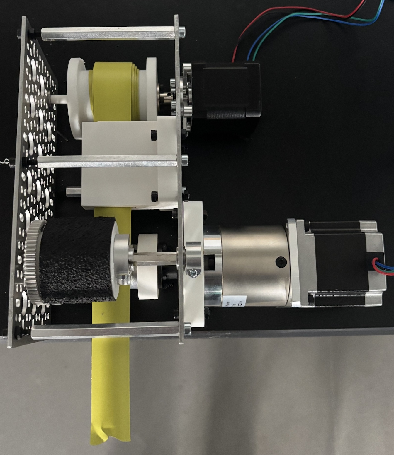 As a research assistant for Cornell Space Structures Lab, I am working on a boom deployment mechanism that can deploy an ultra lightweight boom from a CubeSat without the boom buckling or blossoming. To do this, I have designed two rollers that rotate together with high friction to pull out the boom with a constant tension. The rollers are coupled together, rotated by one stepper motor, which can be set to start and stop to bend the boom into the desired shape at the exit of the deployment mechanism.