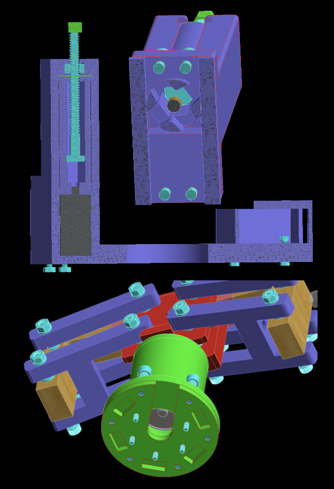 The first prototype of the end effector utilized a 4 linkage system and a DC motor. The end effector also had a camera and self-actuating screwdriver. I manufactured the motor mount using Aluminum 6062 and a mill. Problems encountered with this prototype mostly consisted of too many points of failure in the 3D prints and too much weight.