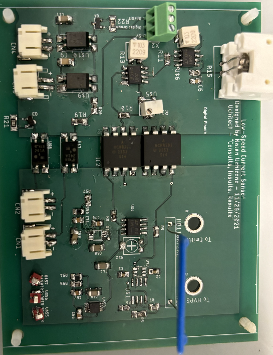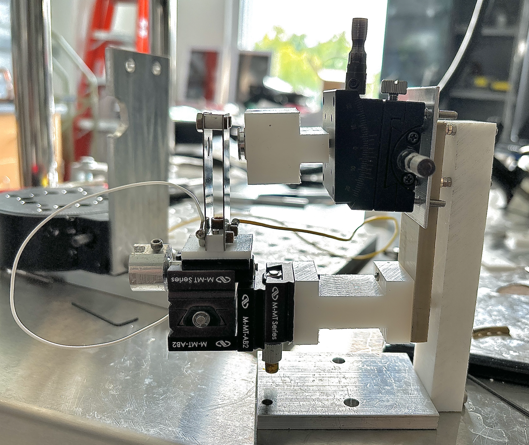 As a research assistant for ASTRA Lab, I tested and analyzed novel nanoparticle fluids in electrospray experiments to determine whether the propellants could indeed last 10 times as long as current technology. The tests were completed by creating electric fields at very high voltages that pulled apart the nanoparticles into their cations and anions, and shot the attractive particles through an aperture in stainless steel plates. By measuring the current that the particles hit a conductive plate through a high voltage sensing circuit, we measured the thrust and specific impulse of these nanoparticles. The testing was completed in a vacuum chamber, so precision was key. That is why I implemented a double goniometer setup, which allowed for rotation of the emitter of the nanoparticles.