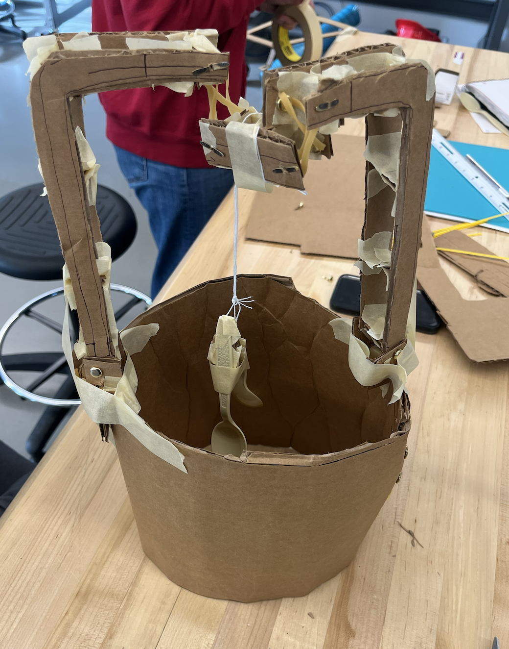 As a part of MAE 2250 (Mechanical Synthesis), I worked on a semester-long group project to build a consumer-ready project. We built an automatic soup stirrer that would stir soup for an individual who does not have the time. After working through many potential designs as a team and comparing the tests of multiple prototypes, we decided on a final design. I designed and created in CAD the final design, shown here, almost entirely myself.